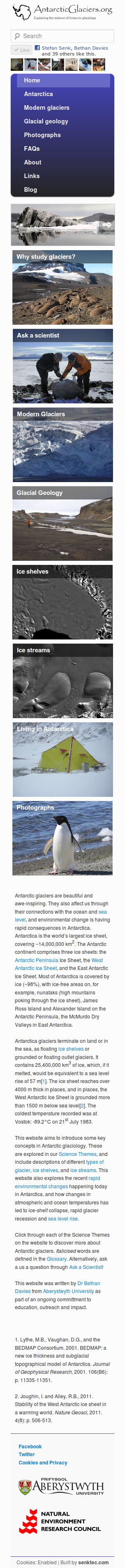 The website was built on WordPress as this allows the authors to easily update the content. The theme was originally based on the Twenty Eleven theme. A slideshow with fading images and images with hover effects were prominently placed on the front page, to entice the users with interaction. Customisations to the image galleries and an “ask a scientist” contact form. The Facebook and Twitter widgets are prominently placed, as social media plays a key role in outreach. The styles were modified to ensure that they wrap round to fit on mobile devices.